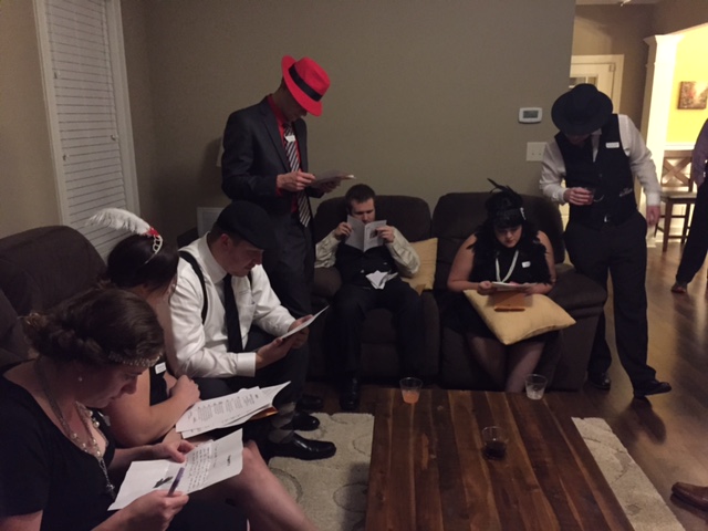 The last weekend in October was Krystal's birthday and Halloween! Friday night we celebrated Krystal with a Murder Mystery Party. It was AWESOME. I am loving these themed parties lately! We all got dressed up in our 1920's attire, made food and drink that you would have had in the 20's and then tried to find out whodunnit! Kallie and her fiance, Andrew, came up from GA to play. It was so good to see them! Here are some pics from the night! Again, I wish we had gotten more pictures! Krystal did a great job on the decorations, and we even made a secret entrance! So much funn!